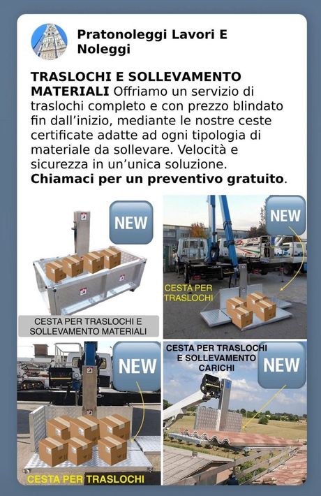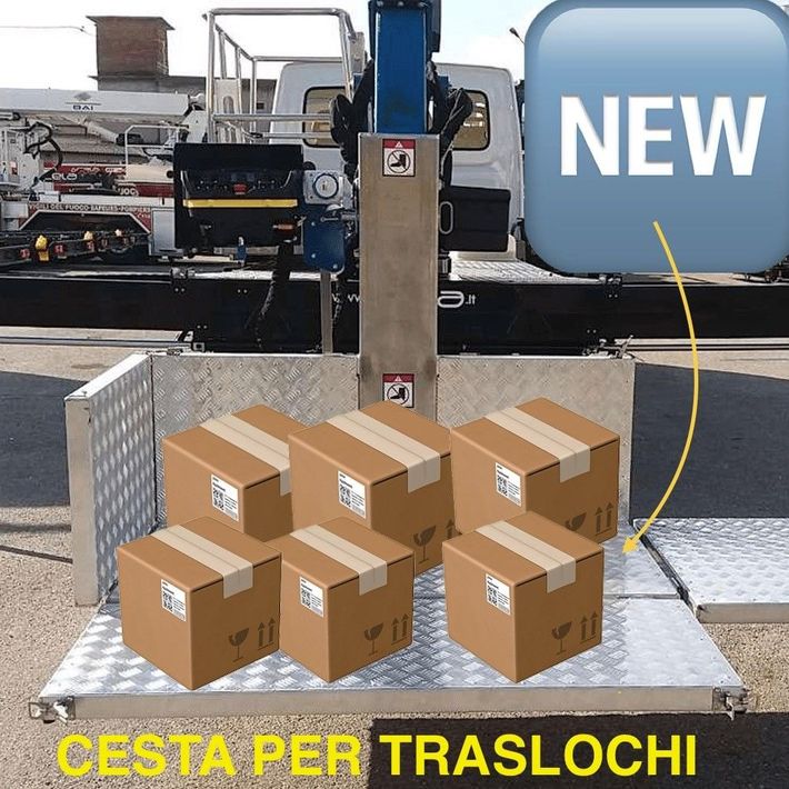 Nuova piattaforma appositamente pensata per i traslochi con capacità altimetrica 25/52 metri e cesta progettata ad hoc per movimentare colli e oggetti.