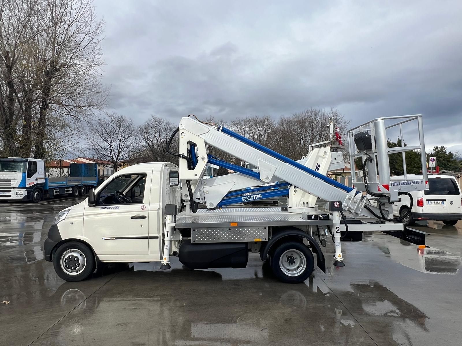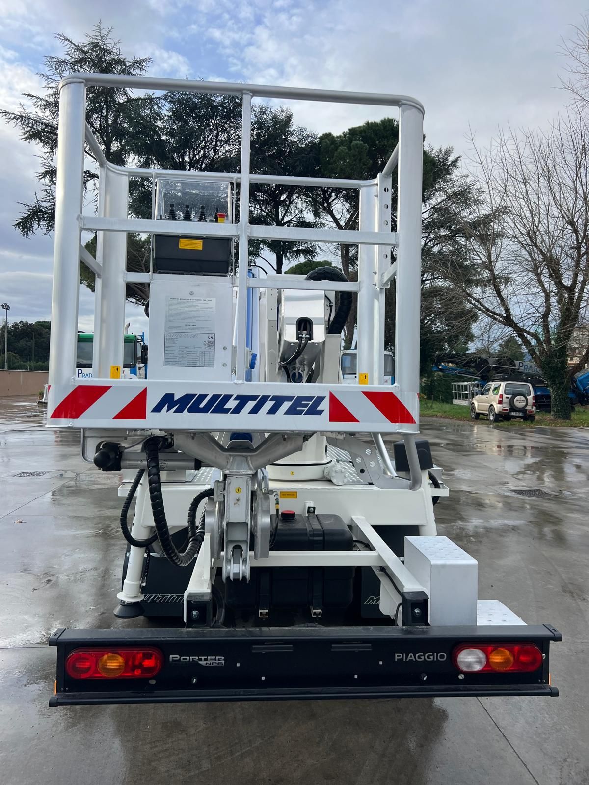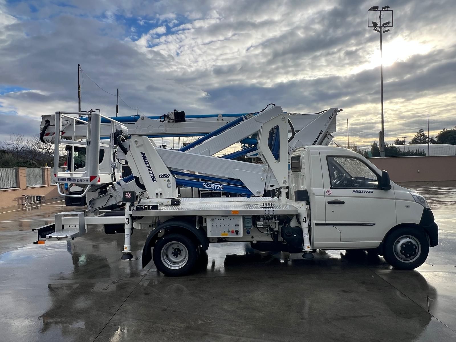 Piattaforma autocarrata articolata Multitel Pagliero MXE 170, allestita su autocarro con PTT da 2.800 kg Piaggio Porter NP6 Long Range, con altezza massima di lavoro di 17,1 m, sbraccio massimo orizzontale di 6 m e portata in cesta di 250 kg e di 8,90 m con portata in cesta di 100 kg.