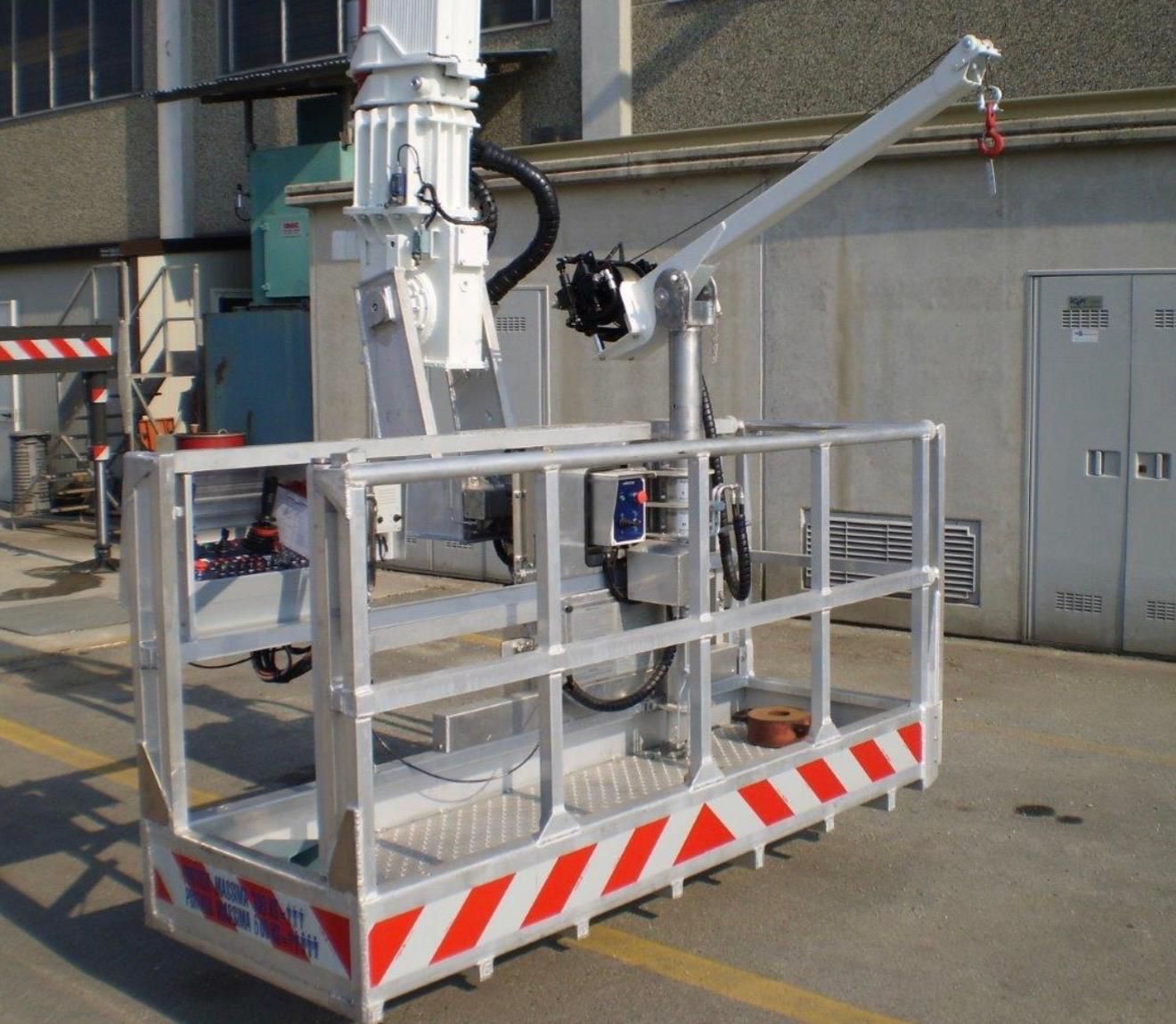 Sbraccio orizzontale massimo di 32.30 m consente una portata in cesta di 120 kg, di 300 kg con lo sbraccio di 30,30 m e di 500 kg a 26.70 m.