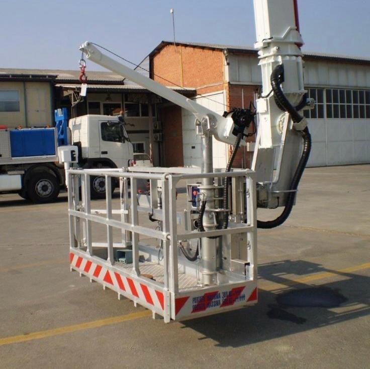 essere montata su autocarri a 2 assi a partire da 18T. È In grado di raggiungere un’altezza di lavoro di 37,30 m e una